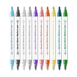 NEW 하이 퀄리티 10 색 라운드 펜촉/브러시 펜촉 더블 헤드 금속 효과 펜 네일 아트 도구