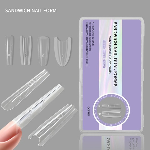 새로운 디자인 240 PC 종이 플라스틱 상단 이중 손톱 양식 샌드위치 이중 양식