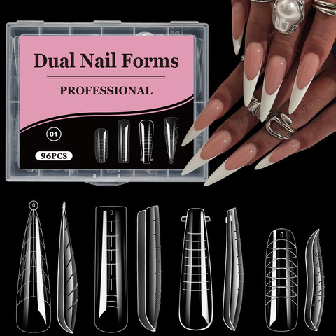 NEW 96pcs 4 in 1 네일 몰드 팁 빌딩 네일 몰드 퀵 익스텐션 네일 아트 듀얼 폼